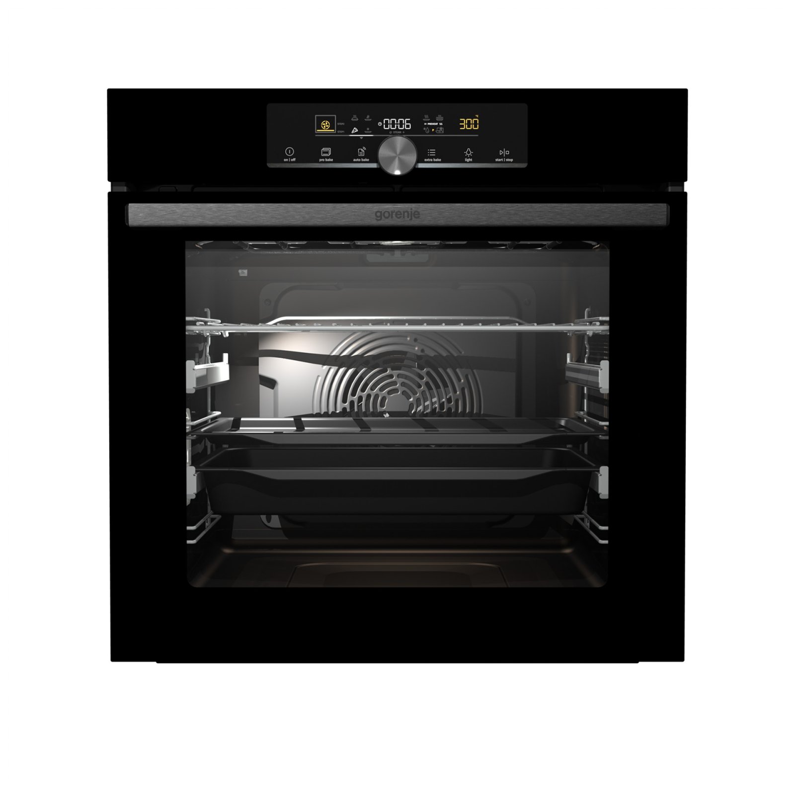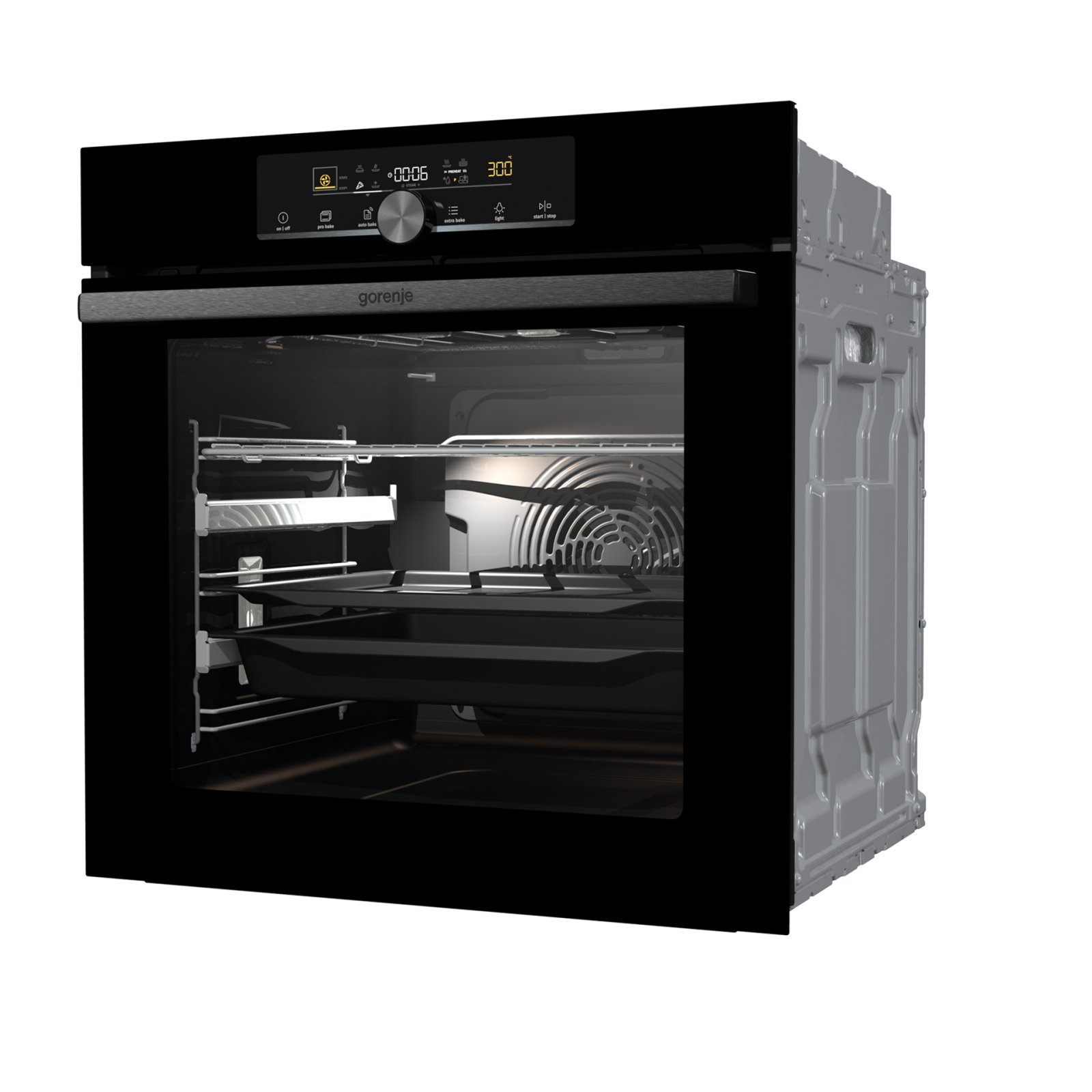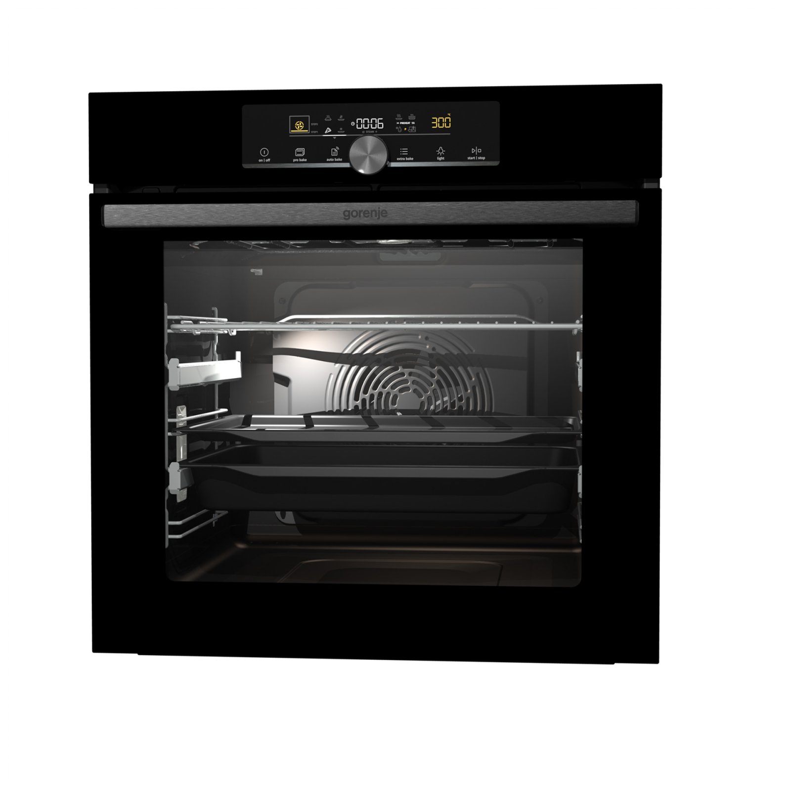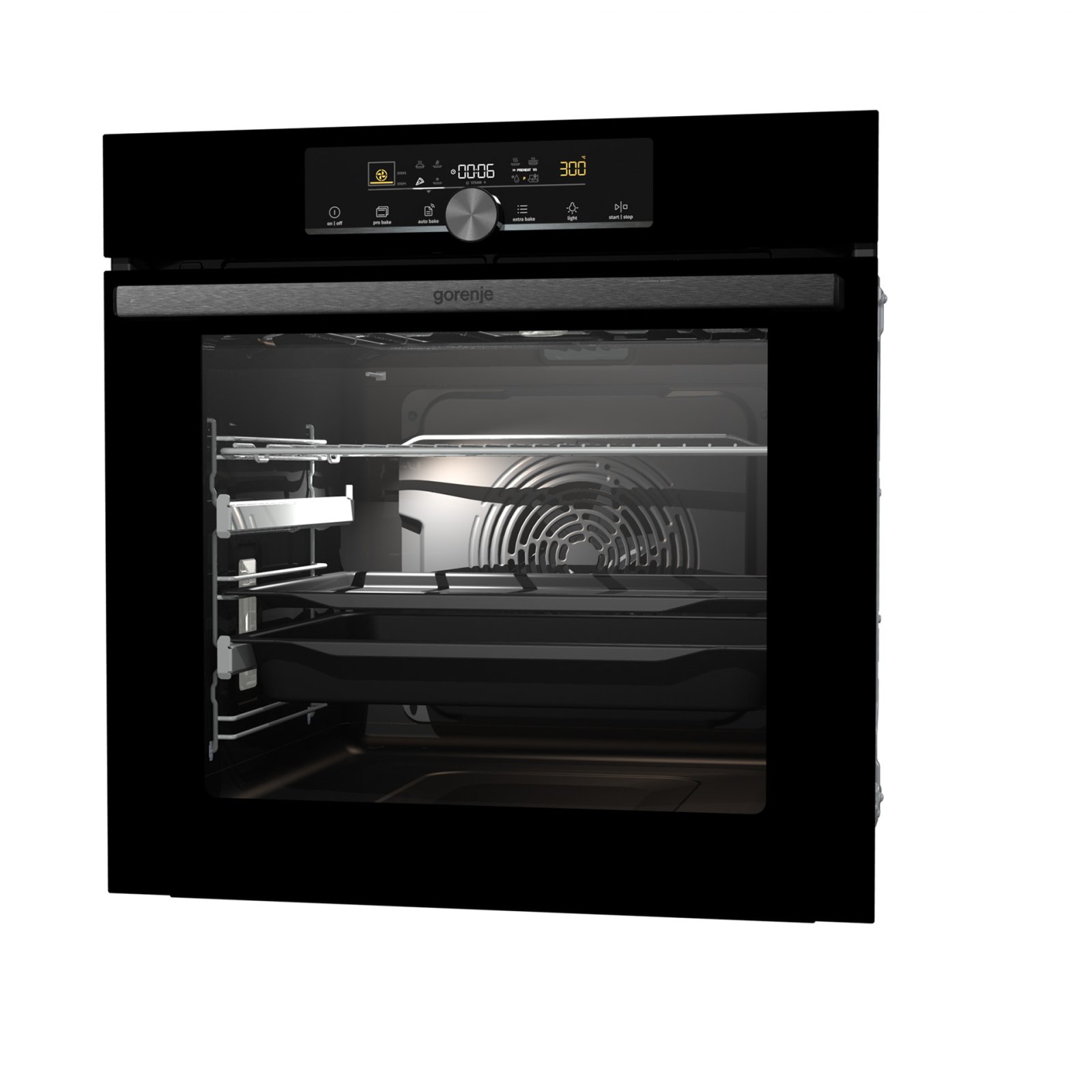 Combination of smart air movement, evenly distributed spaces between the tray positions and special slightly rounded cavity ensure the food is evenly baked on every level and since the oven volume is larger, the overview is excellent as well.