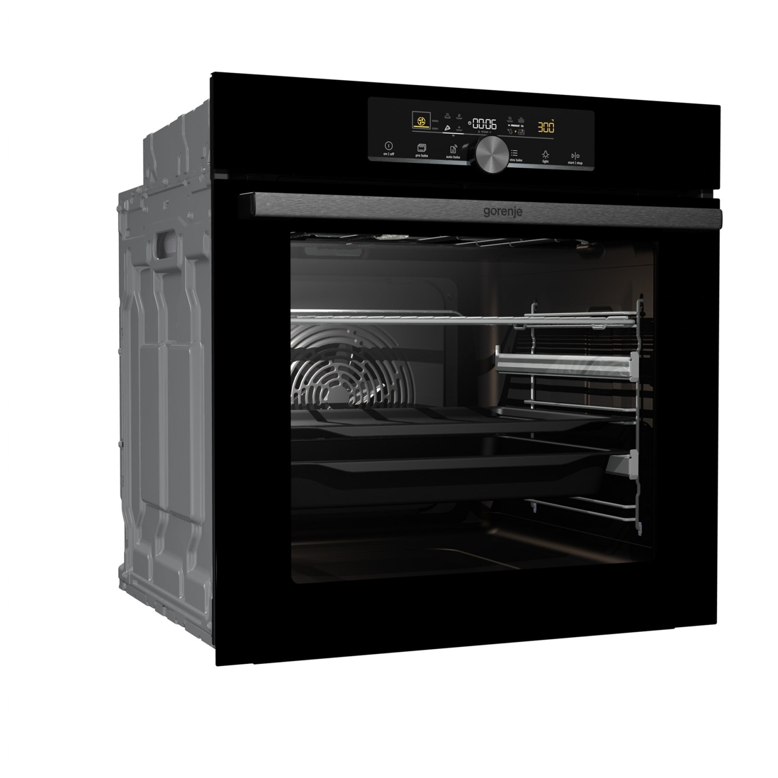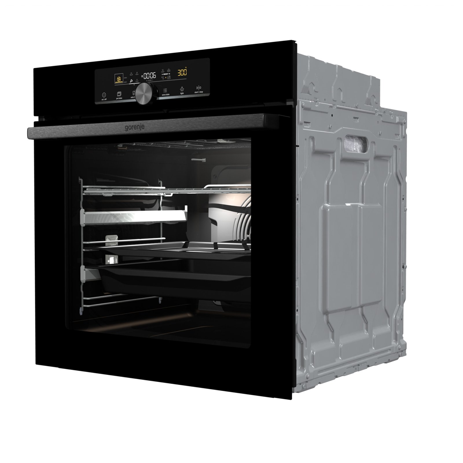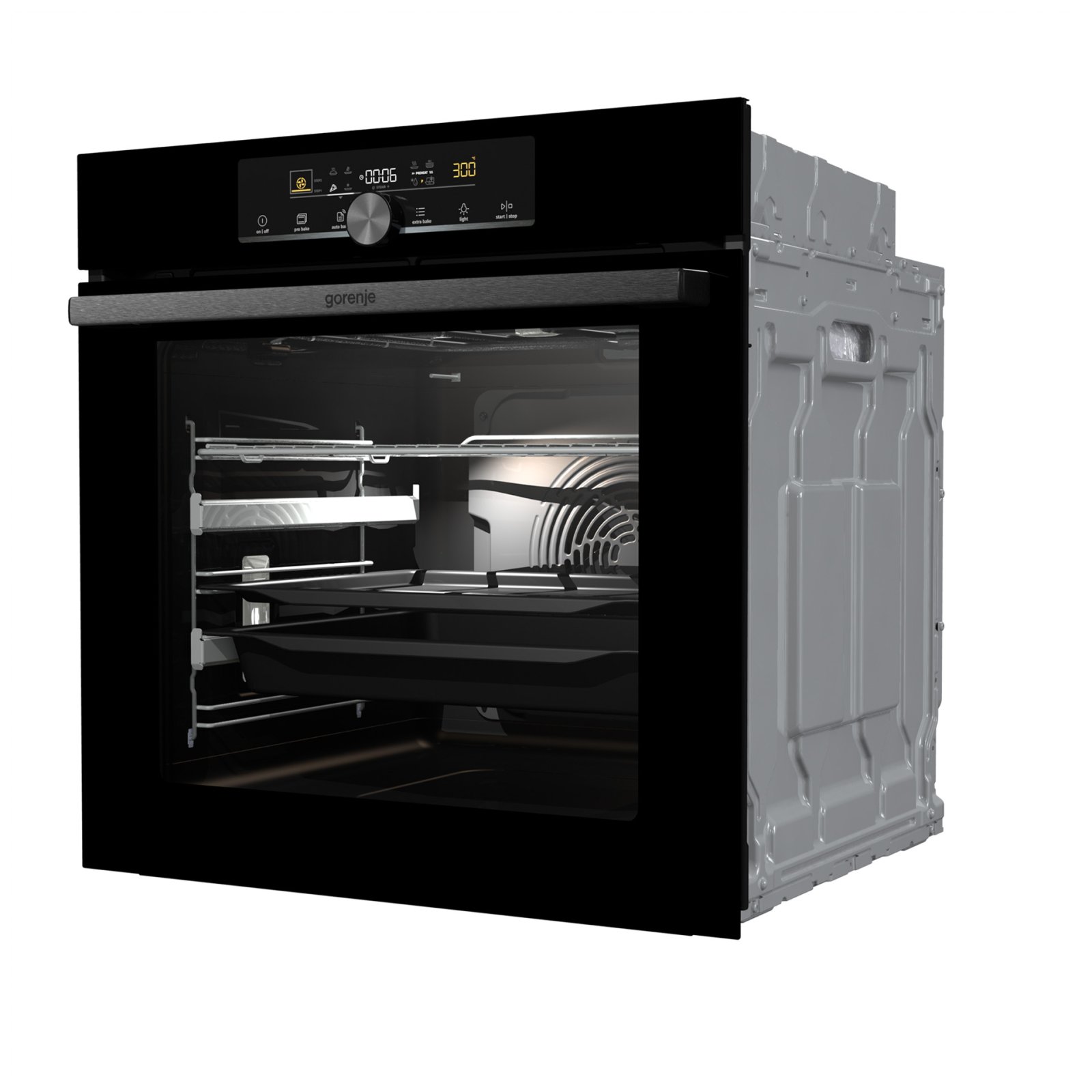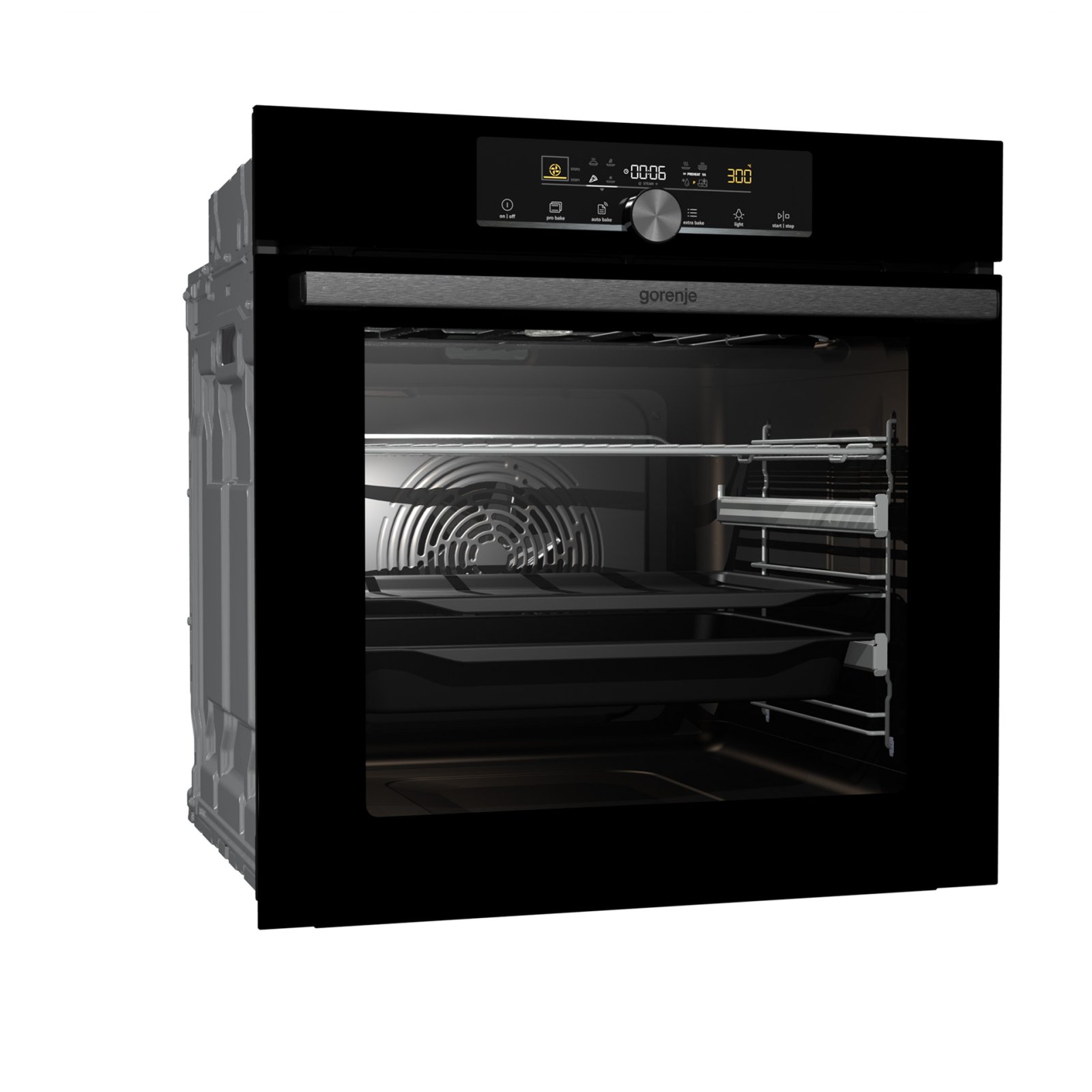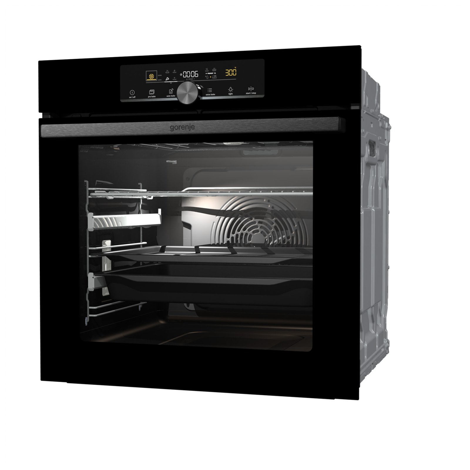 Combination of smart air movement, evenly distributed spaces between the tray positions and special slightly rounded cavity ensure the food is evenly baked on every level and since the oven volume is larger, the overview is excellent as well.