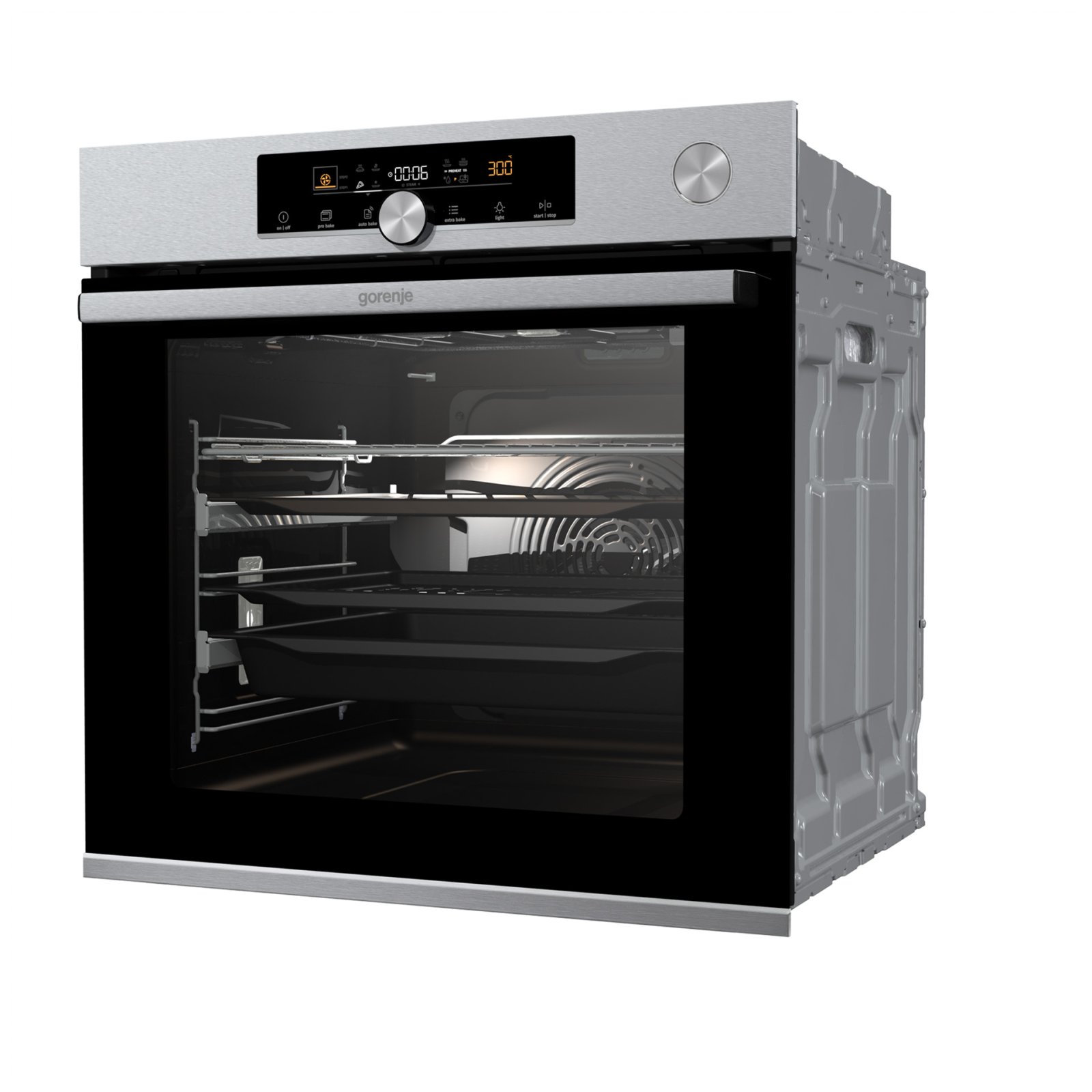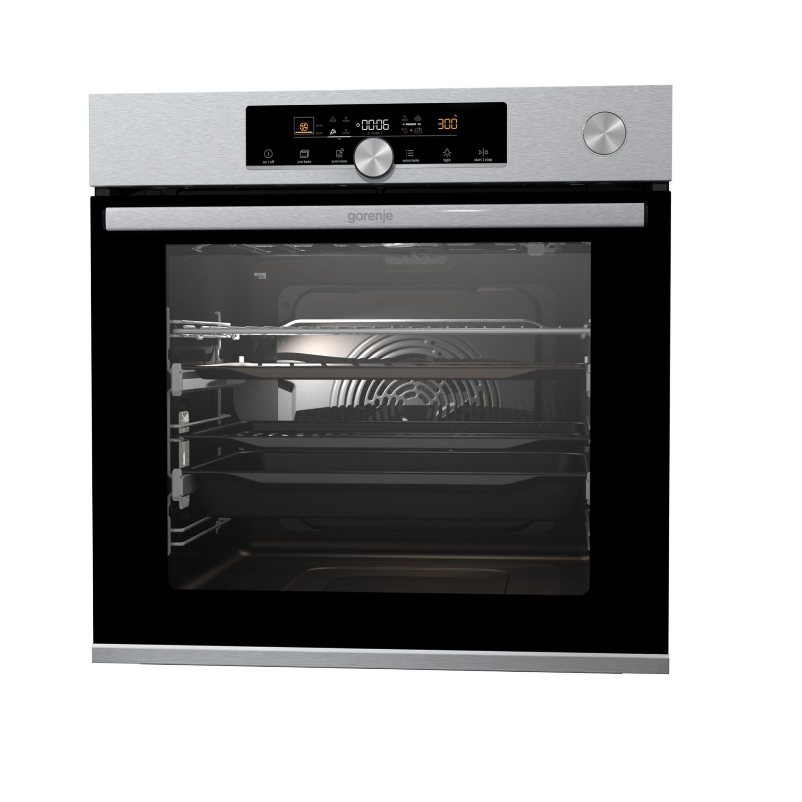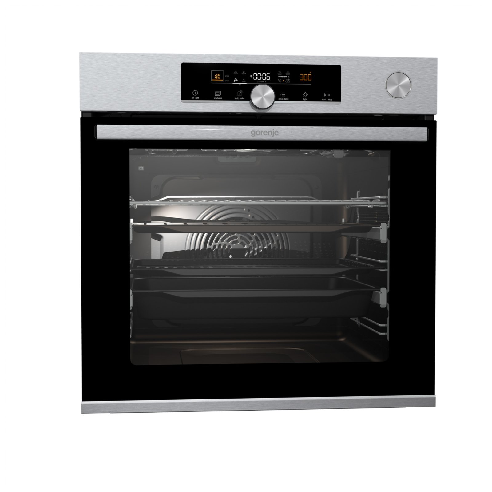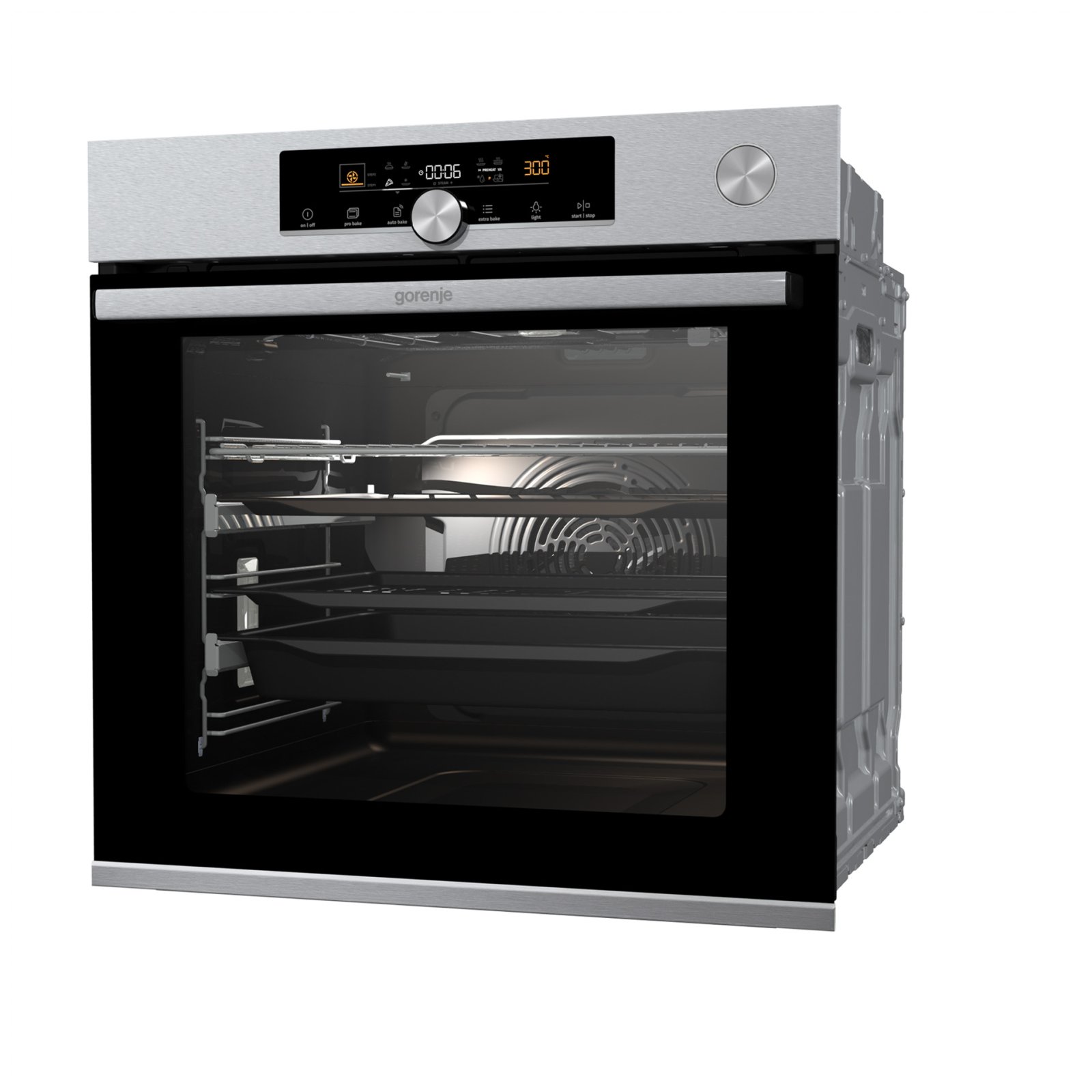 Combination of smart air movement, evenly distributed spaces between the tray positions and special slightly rounded cavity ensure the food is evenly baked on every level and since the oven volume is larger, the overview is excellent as well.