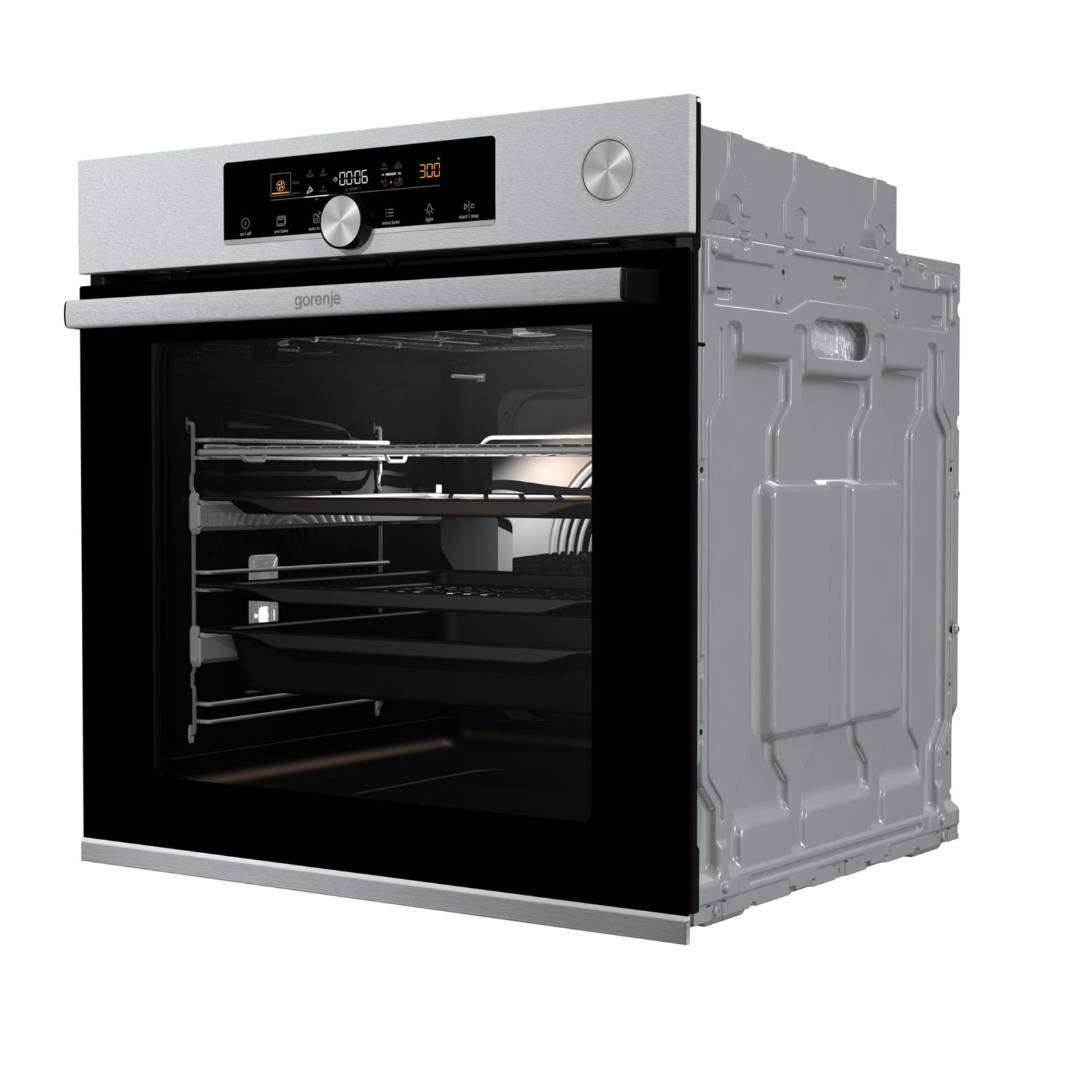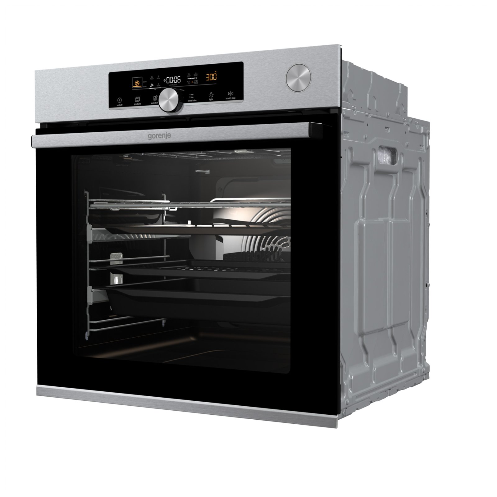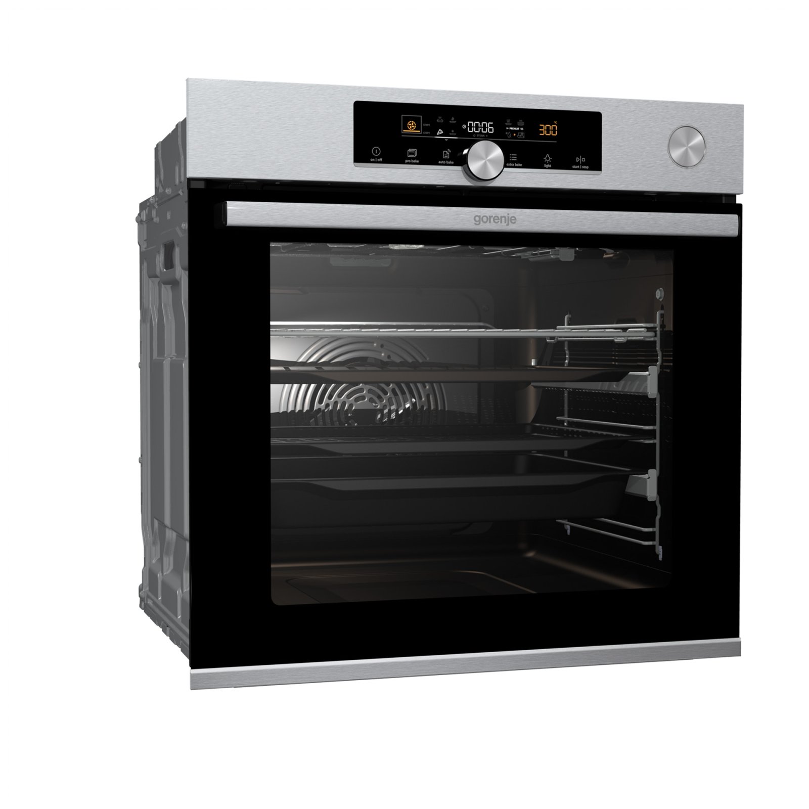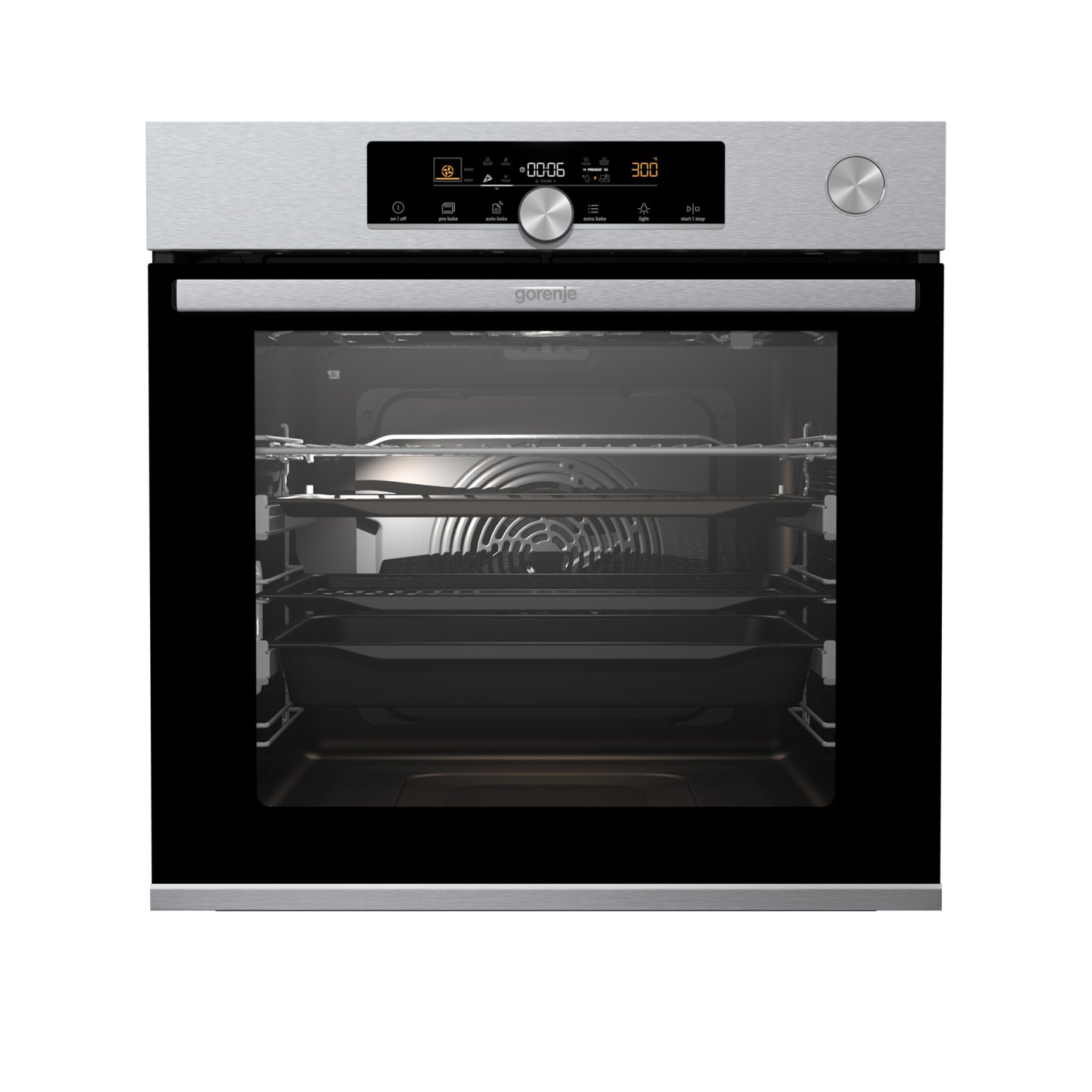 Combination of smart air movement, evenly distributed spaces between the tray positions and special slightly rounded cavity ensure the food is evenly baked on every level and since the oven volume is larger, the overview is excellent as well.