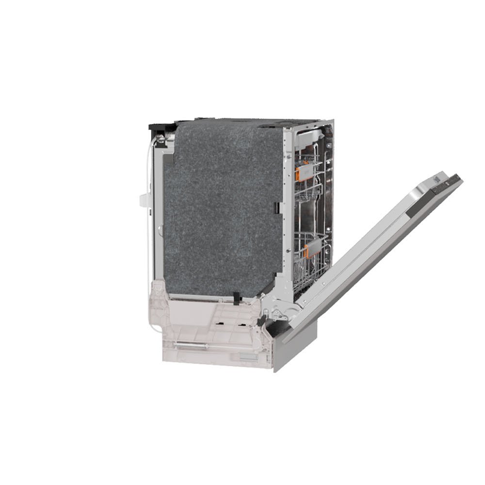 The baskets are equipped with highlighted movable elements and a customizable basket layout for easy loading. The truly simple two level basket adjustment system allows you to fit even the biggest pots and plates. The plate rack in the lower basket can be easily folded. Cutlery can be perfectly organized on a special tray, where they are positioned separately for perfect cleaning and drying results. Every detail is carefully designed for easiest possible handling.